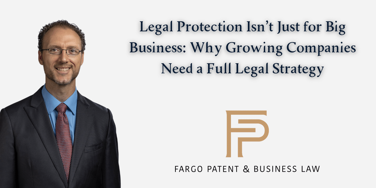 At Fargo Patent & Business Law, we work with small to mid-sized businesses every day. We’ve seen firsthand what happens when a business grows quickly without a legal foundation in place. Whether you’re launching a new product, scaling your team, or entering new markets, a proactive legal strategy isn’t a luxury—it’s a necessity.